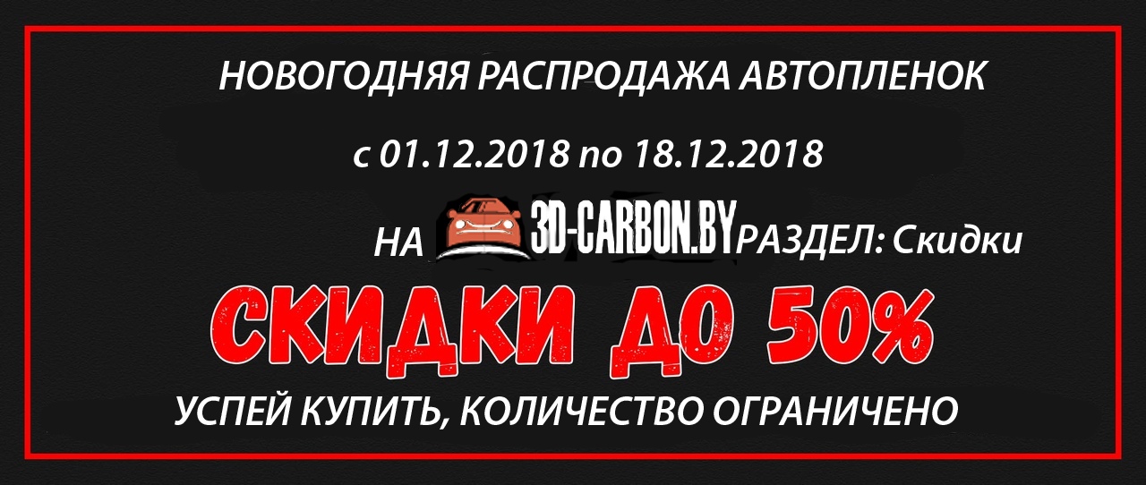 СПЕШИТЕ. с 1 декабря 2018 года до 18 декабря 2018 года стартует новогодняя распродажа автомобильных пленок. Только честные скидки, ограниченное количество наименований по скидке. Товары ...