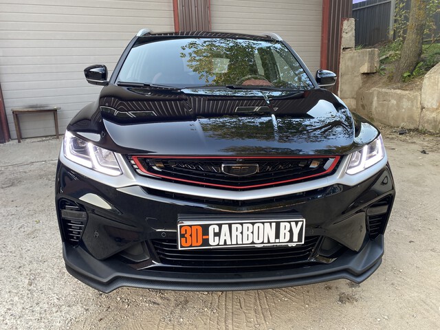 Тонировка значка Geely Coolray антигравийной полиуретановой пленкой в Минске по низкой цене. Защита пленкой Geely Coolray