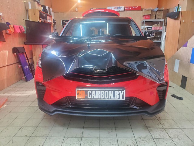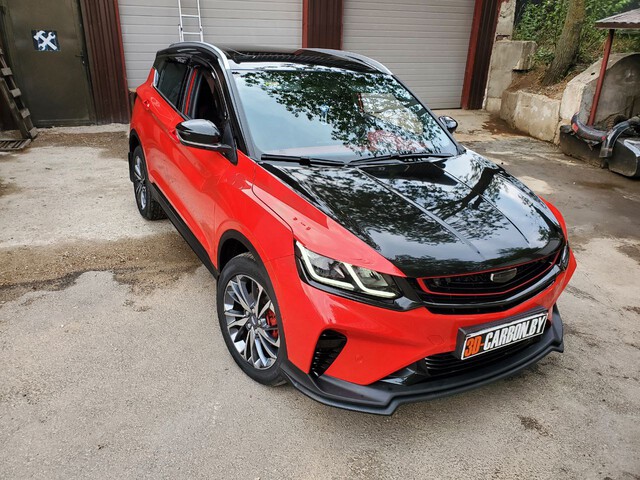 Оклейка стайлинг Geely Coolray черной пленкой (крыша, стойки,зеркала, спойлер) в Минске