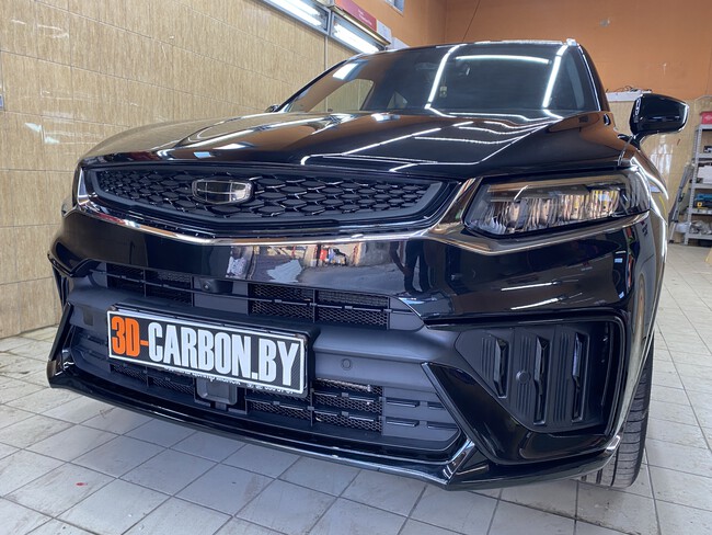 Оклейка Geely Tugella антигравийной полиуретановой пленкой в Минске по низкой цене. Защита пленкой Geely Tugella.