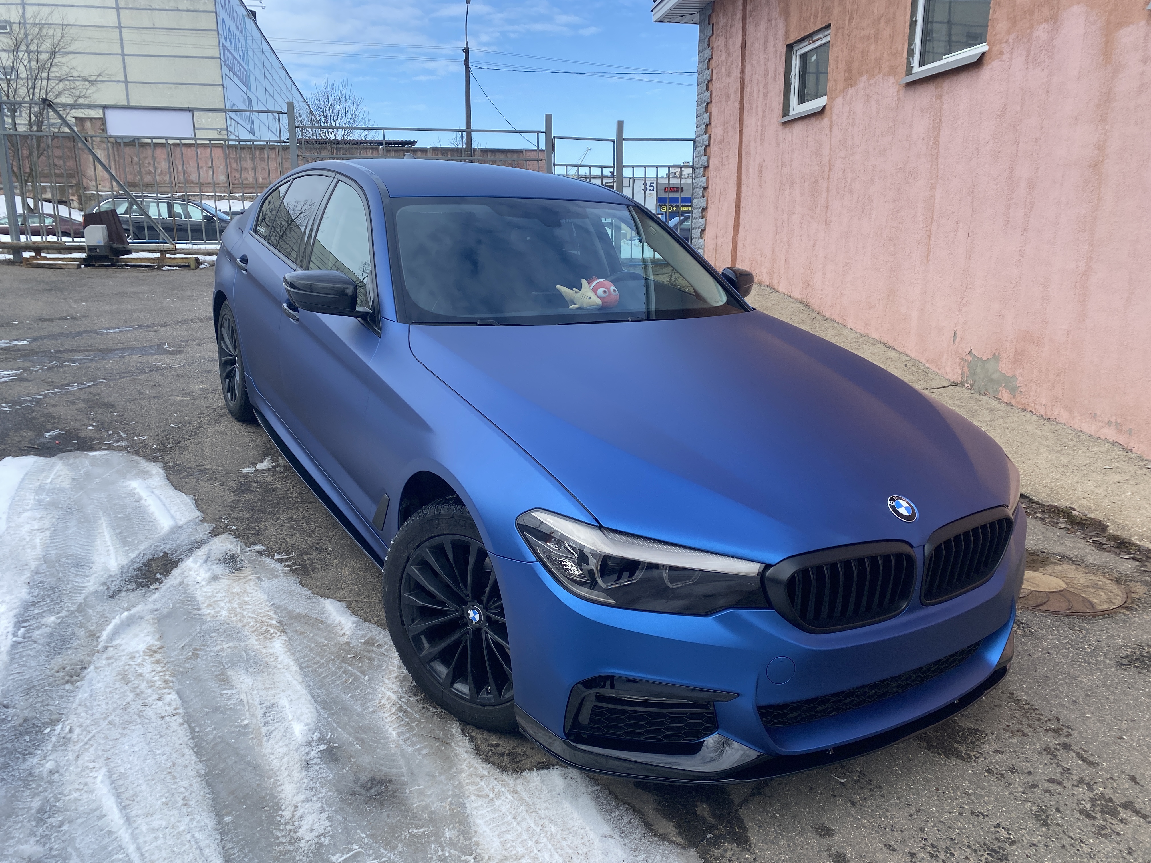 Оклейка БМВ 5 Серии в синюю матовую пленку