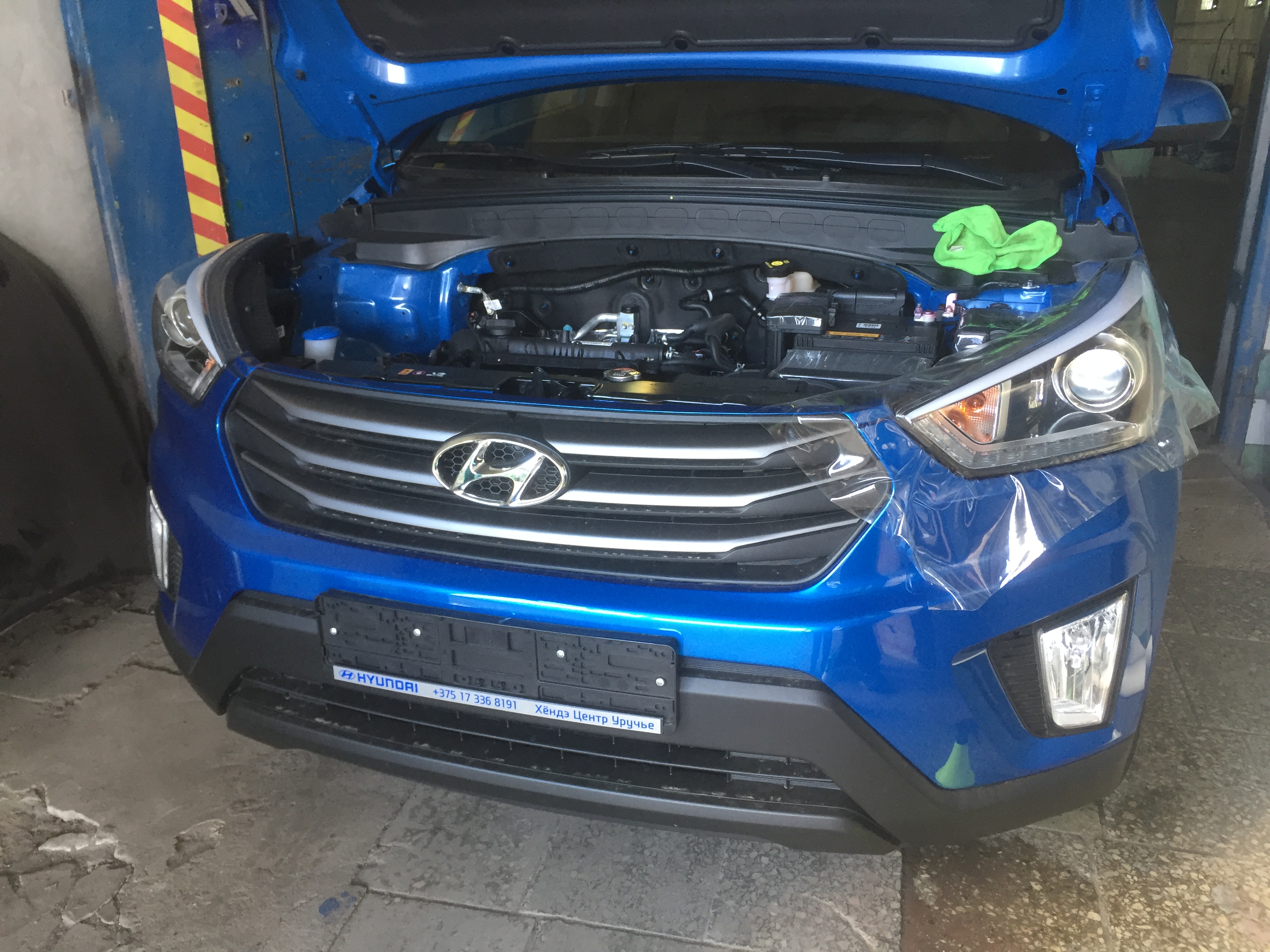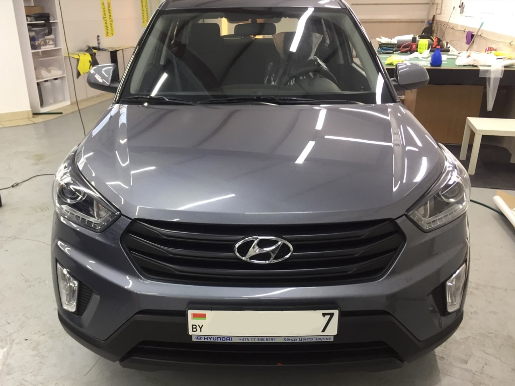 Оклейка крета в антинравийную пленку. Капот целиком, фары, птф, полоса на крышу, пороги, зоны под ручками.