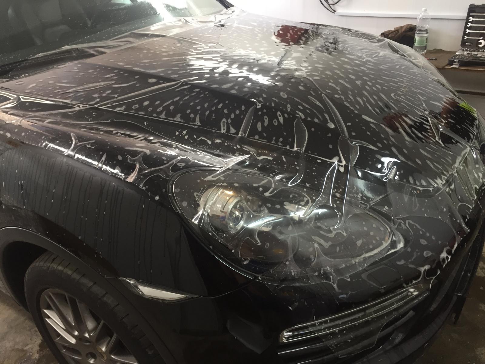 Porsche cayenne в защитную полиуретановую пленку, капот, крылья, бампер, фары, дхо, стойки, полоса на крыг, задние фары. пороги