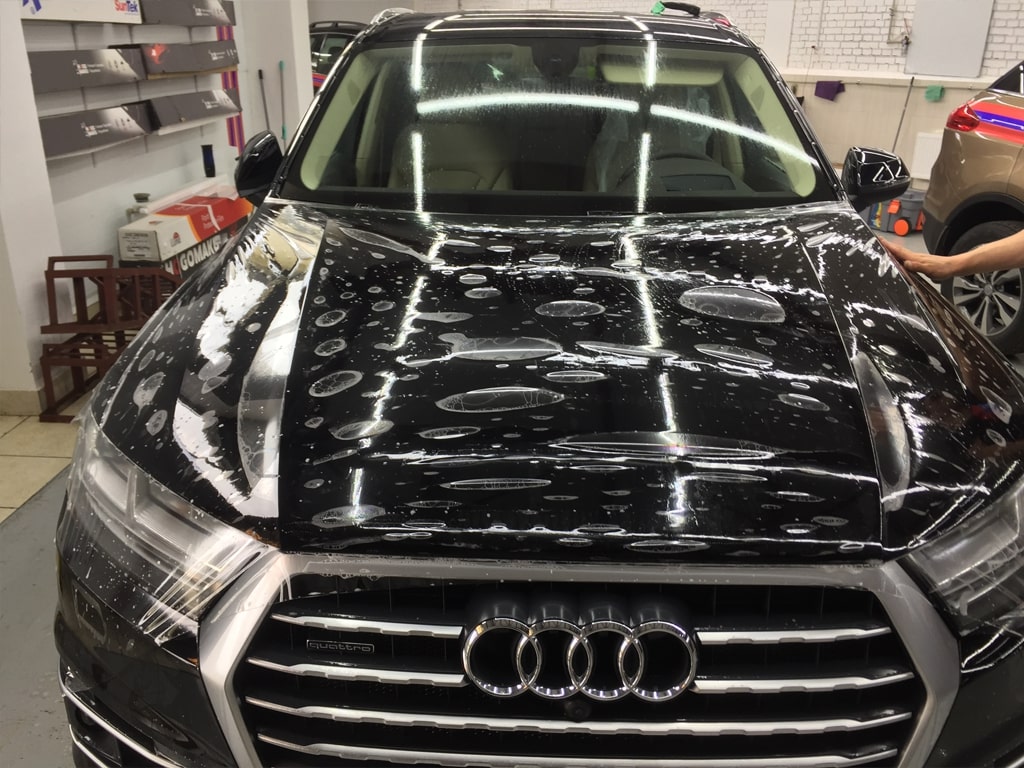 оклейка в антигравинйую пленку.капот, полоса на крышу, стойки, двери до ручек, пороги