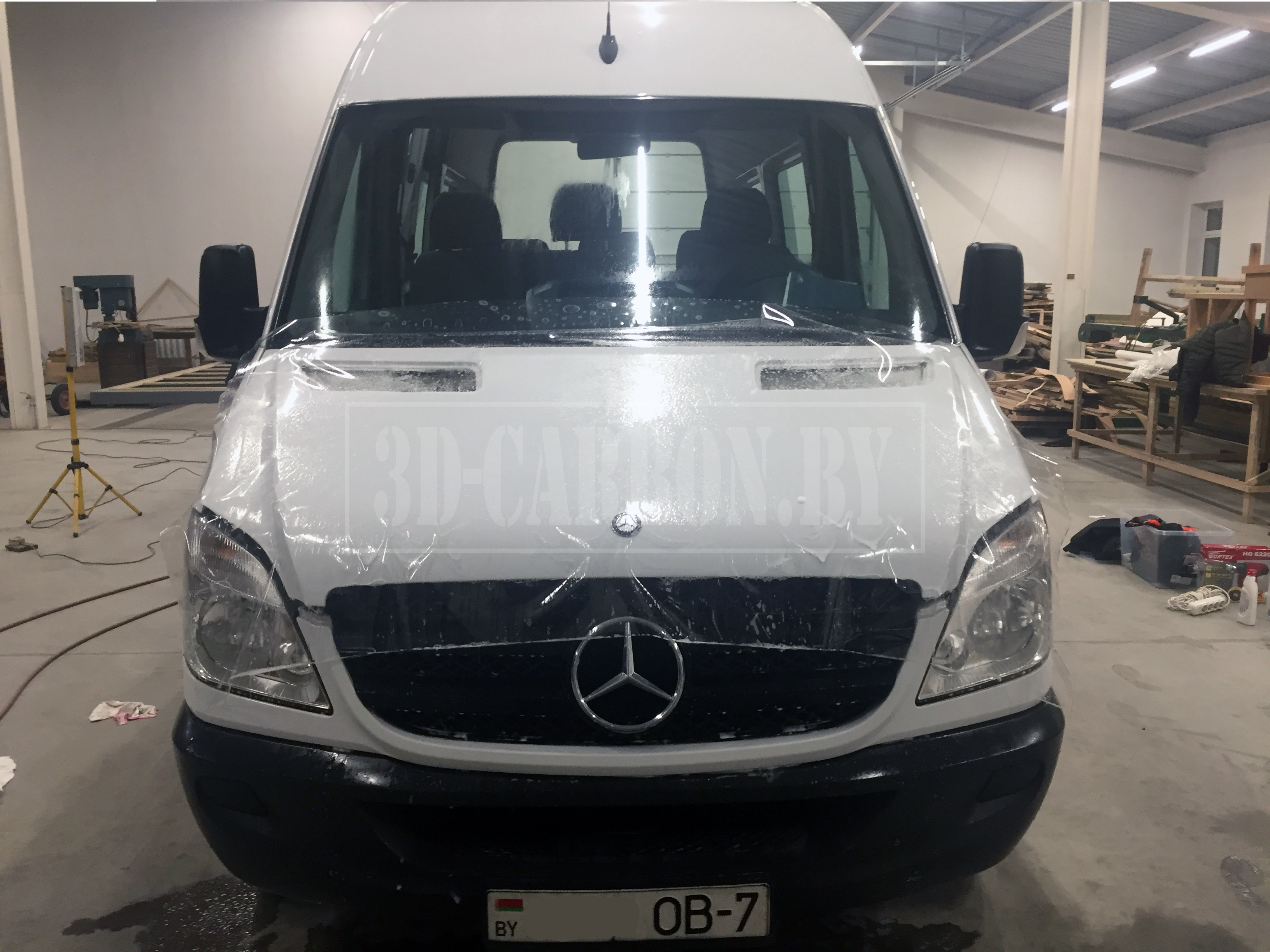 Оклейка капота мерседес спринтер в антигравийную пленку.