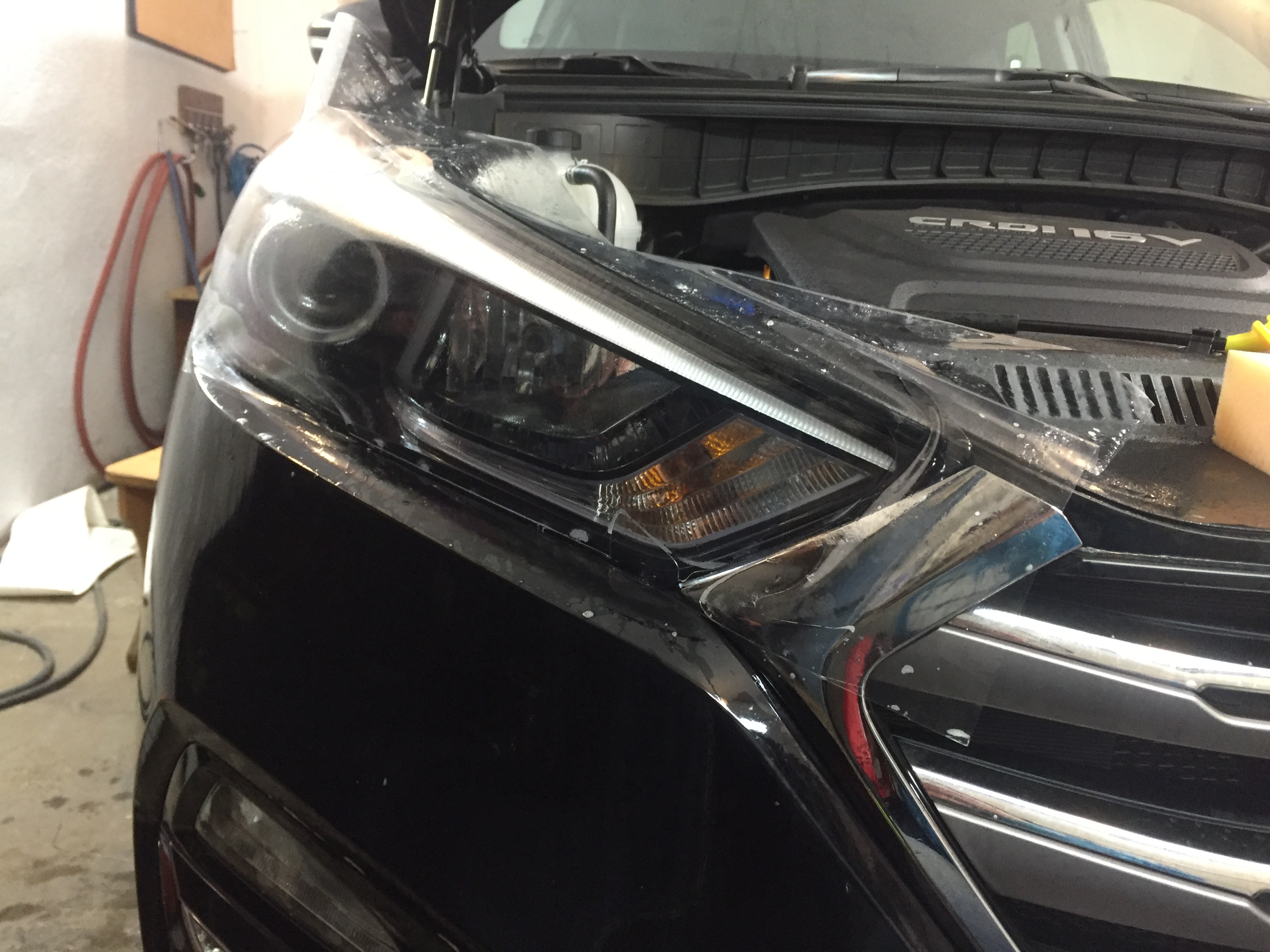 hyundai tucson в антигравийную пленку фары, птф, бампер, капот, полоса на крышу, стойки лобового стекла, антиманикюр, пороги внутренние